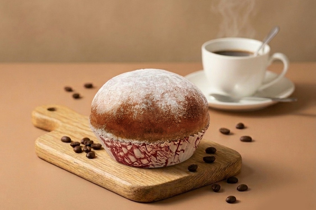 圓潤的外型,表層烤得金黃酥脆,一入口,是帶著甜香的酥皮與柔軟麵包。