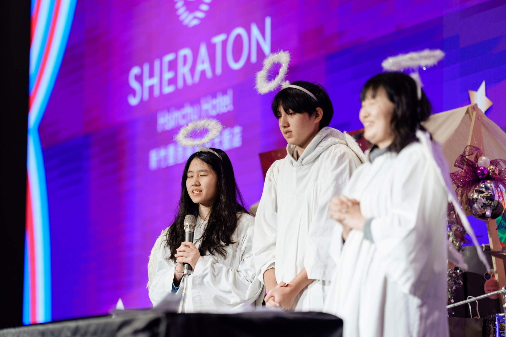 由新竹豐邑喜來登大飯店招待兩家育幼院孩童到飯店參加百樂派對,一邊享用各廳主廚聯手打造的美味餐點,一邊觀賞來自社會各界的愛心演出。