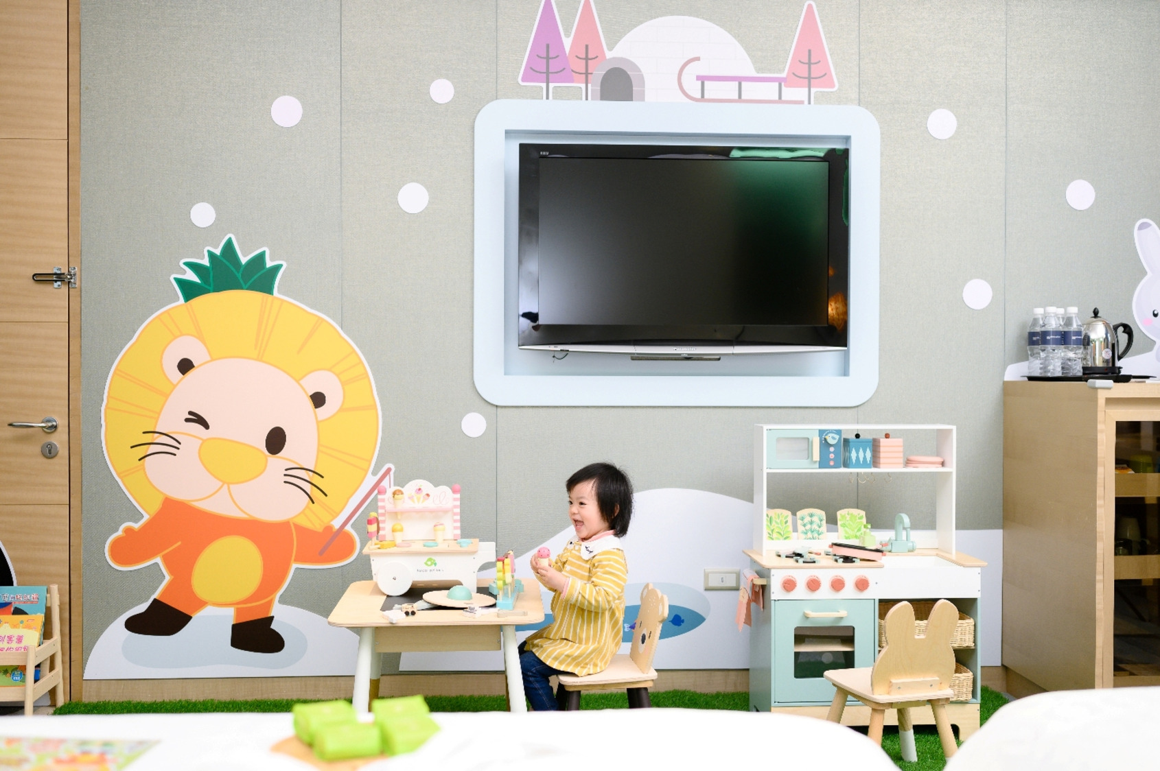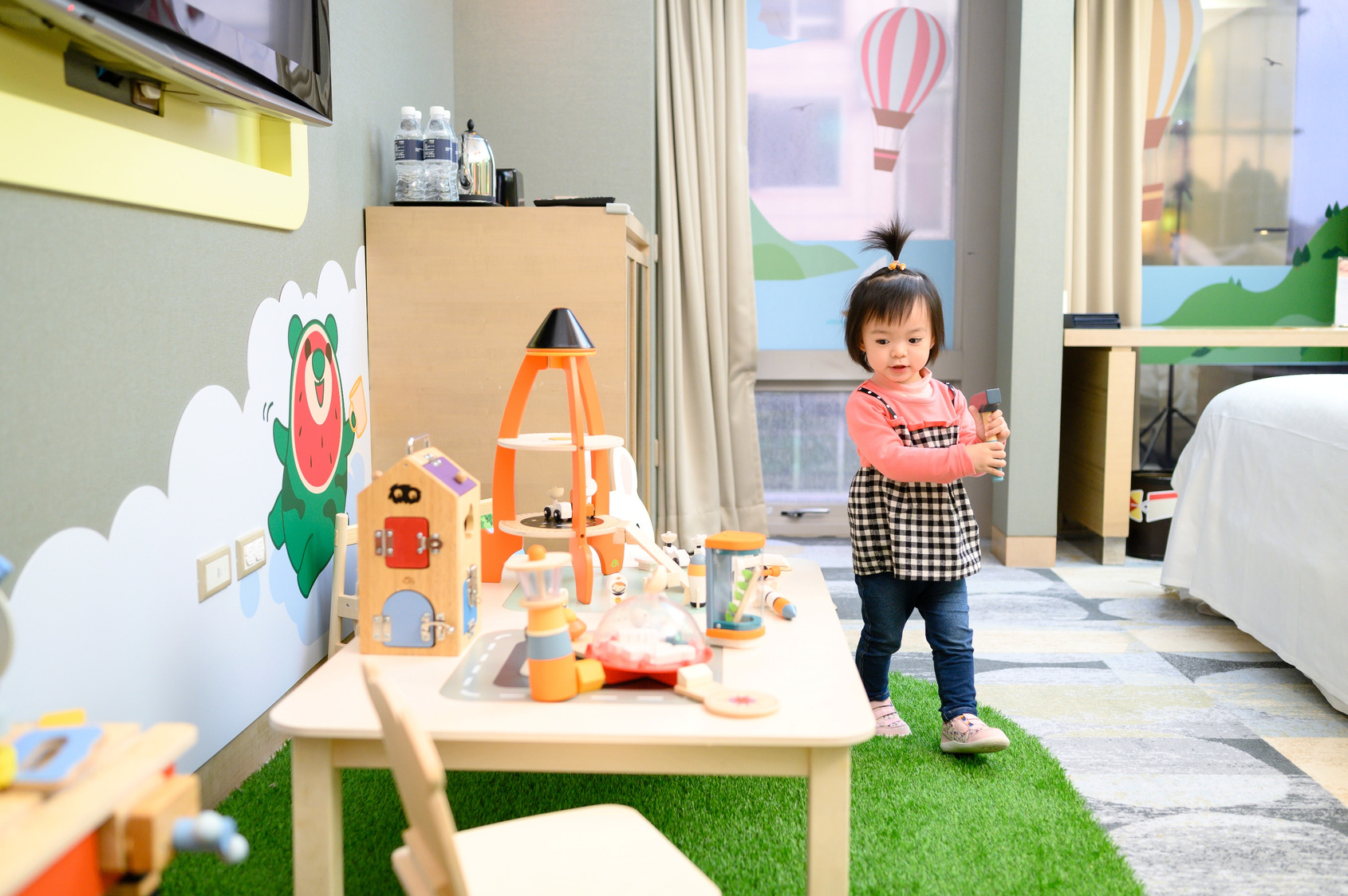 與喜波波和喜瓜瓜到森林或外太空探索,或是搭上飛行氣球環遊世界、到極地與企鵝跳舞,還是當個農場主人、烘焙店長,六大主題,讓孩子在房間就可全力放電。